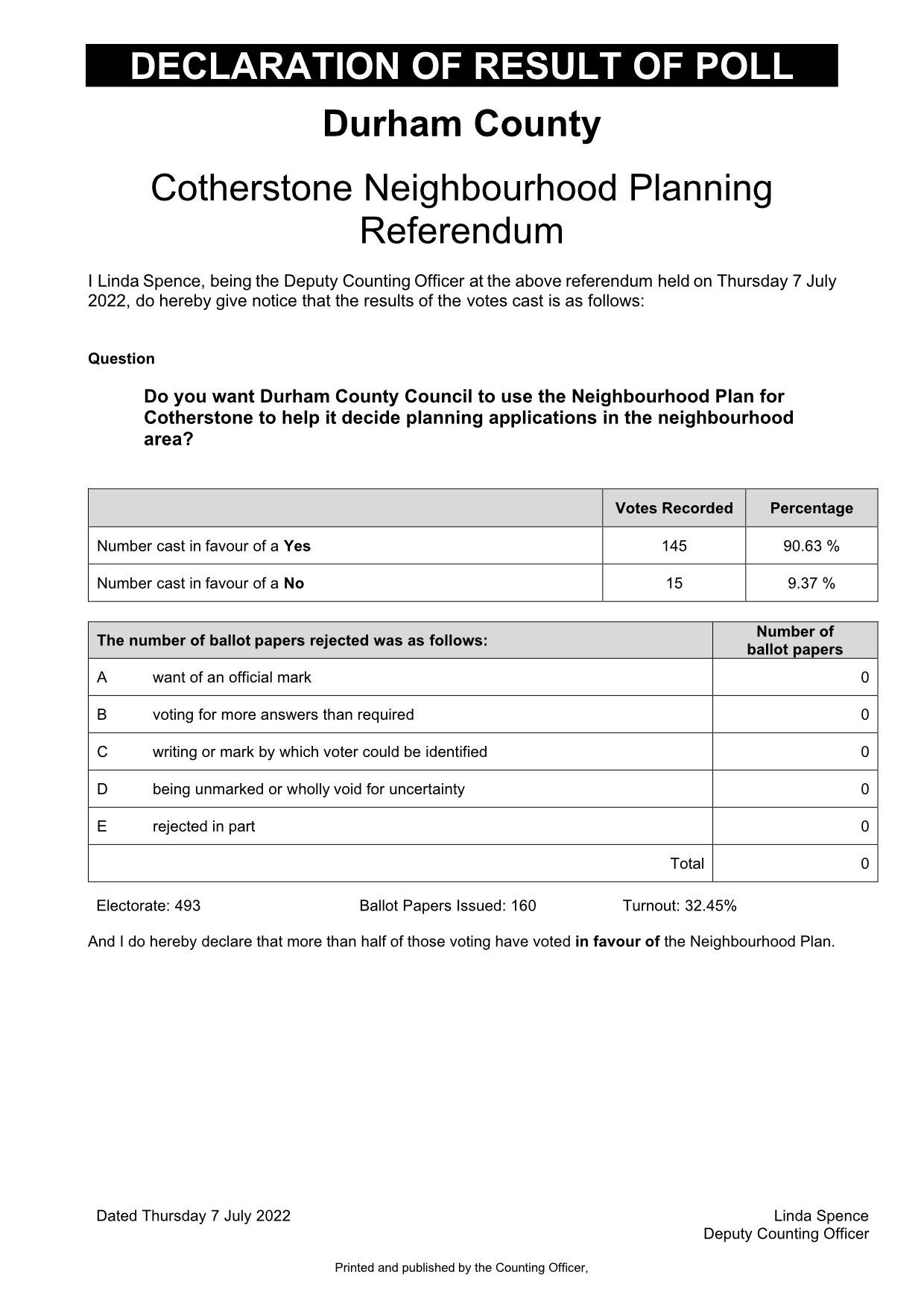 The next stage towards the Plan being 'made' is a referendum, details of which will be announced in due course.